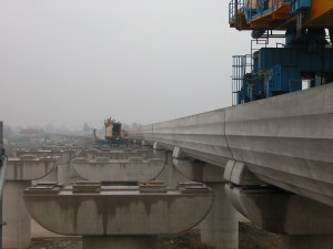 The line runs for 32 km on viaducts and for 3 km in tunnel, the rest being at-grad.