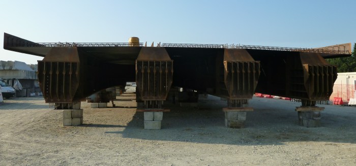 The manufactured is realized with four beams in steel S355J2+W and S355K2+W. 1.90 high with collaborating concrete slab.